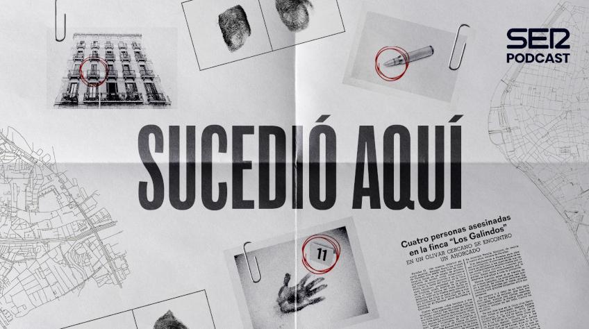 'Sucedió aquí’ es el nuevo true crime periodístico de SER Podcast sobre sucesos ocurridos en distintos puntos de España y que, pese a su origen local, tuvieron un impacto que trascendió su entorno y tuvo en vilo a una parte del país. El podcast contará con ocho entregas quincenales disponibles en la app y la web de la Cadena SER y en las principales plataformas de audio.